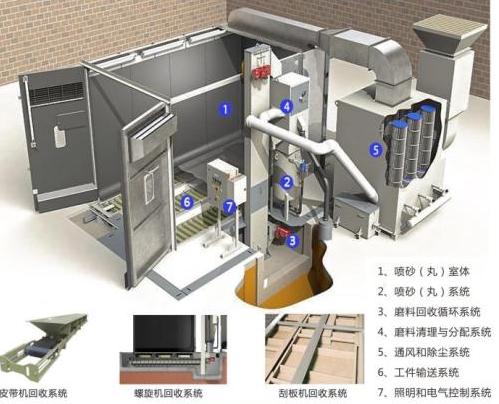 ]]>由于噴砂或者噴丸除塵作業會激起粉塵,散布范圍廣大,會造成嚴重的環境污染,我們需要將工件噴砂、噴丸除銹作業放入封閉的房間去完成,既要將工件噴砂、噴丸作業隔離,同時也要滿足對噴砂、噴丸作業產生的沙礫、鋼砂回收,對噴砂后對粉塵過濾除塵,我們將這樣的房間成為噴砂房或者噴丸房。